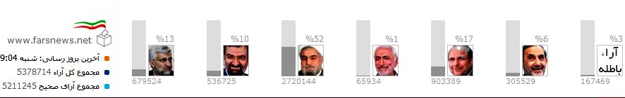 عکس/ نمودار آرای شمرده شده تا ساعت 9 صبح امروز