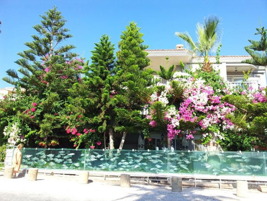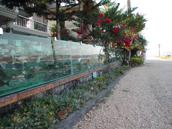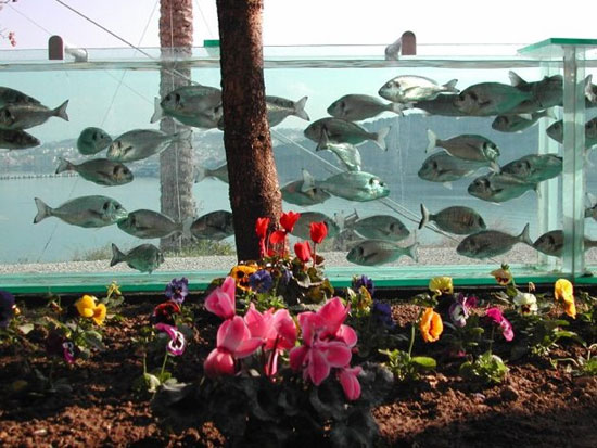 آکواریوم پر از ماهی به دور خانه اش منظره ای زیبا و شگفت انگیز پدید آورده