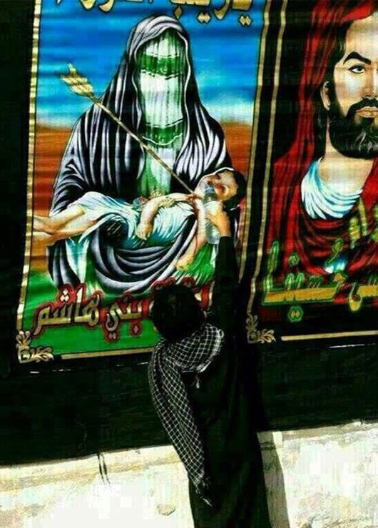 این عکس که به تازگی در شبکه های اجتماعی منتشر شده تا به حال میلیون ها بیننده داشته و اشک آنها را سرازیر کرده است. یکی از کودکان شرکت کننده در عزاداری های امام حسین (ع) در عالم کودکانه اش سعی می کند با بطری آب خود، شیرخواره امام حسین (ع) را سیراب کند.
