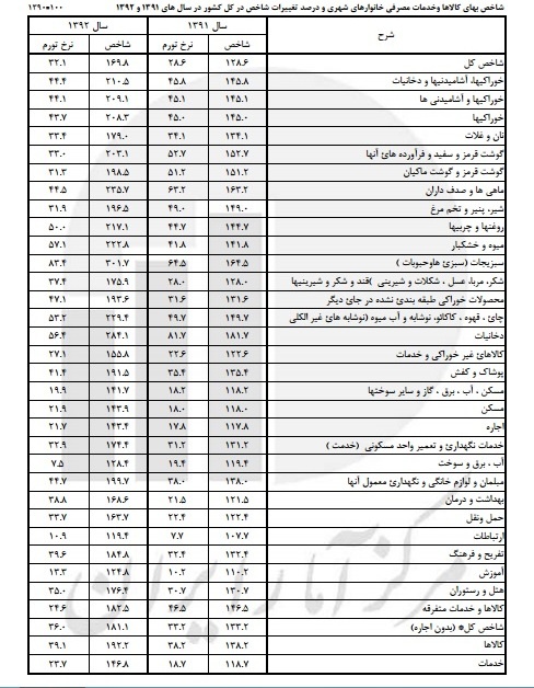 درصد افزایش داشته که نشان دهنده افزایش نرخ تورم سال ۱۳۹۲ نسبت به نرخ