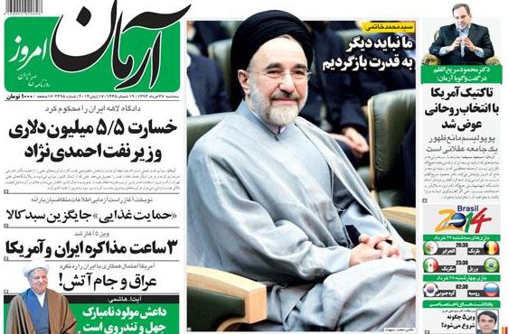 خلاف قانون از آن جهت که بنابر مصوبه شورای عالی امنیت ملی، روزنامه های آرمان، اعتماد و ابتکار (وابسته به اصلاحطلبان) در حالی تصویر سید محمد خاتمی را به عنوان خبر اول خود چاپ کرده اند که وی "ممنوع التصویر" و "ممنوع البیان" است و این اقدام آنان خلاف قانون بوده و مستوجب برخورد قاطع مسئولین مربوطه است.