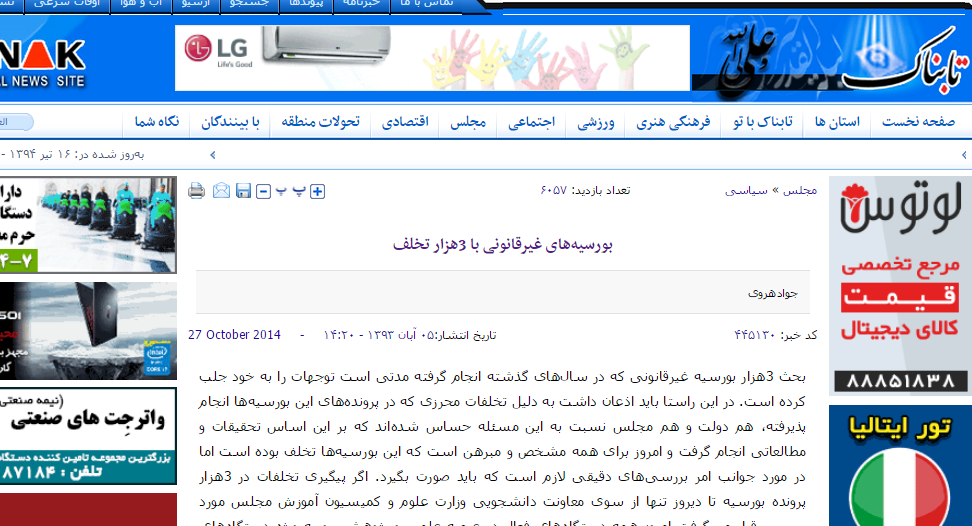 (نمونه ای از مطالب منتشر شده در این رسانه)