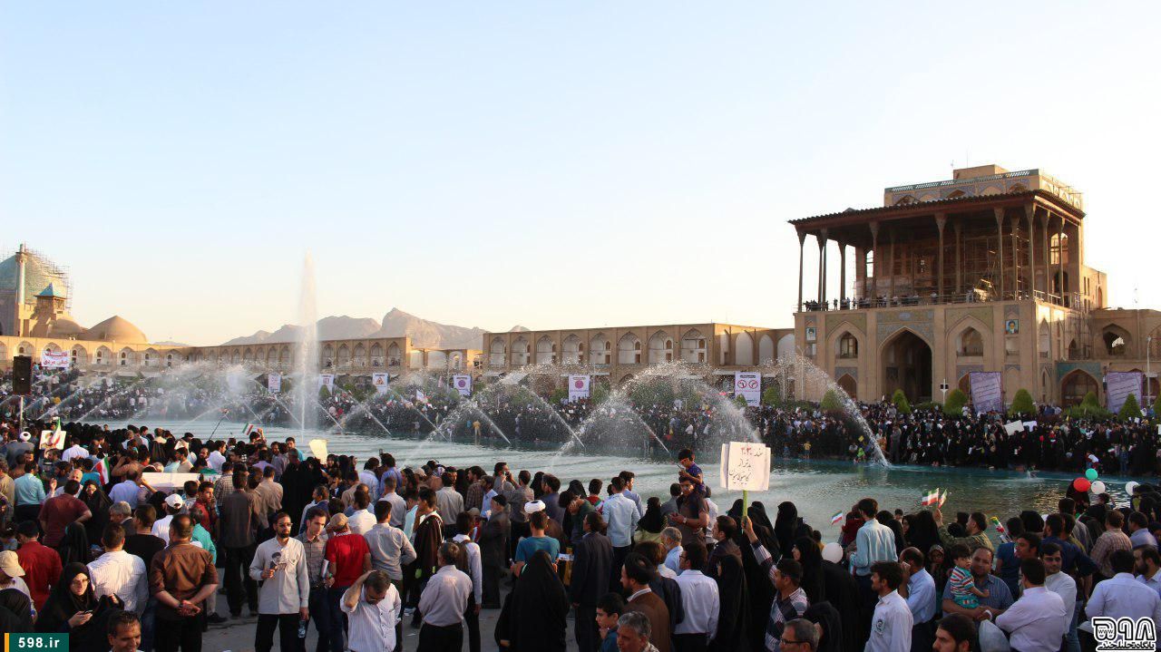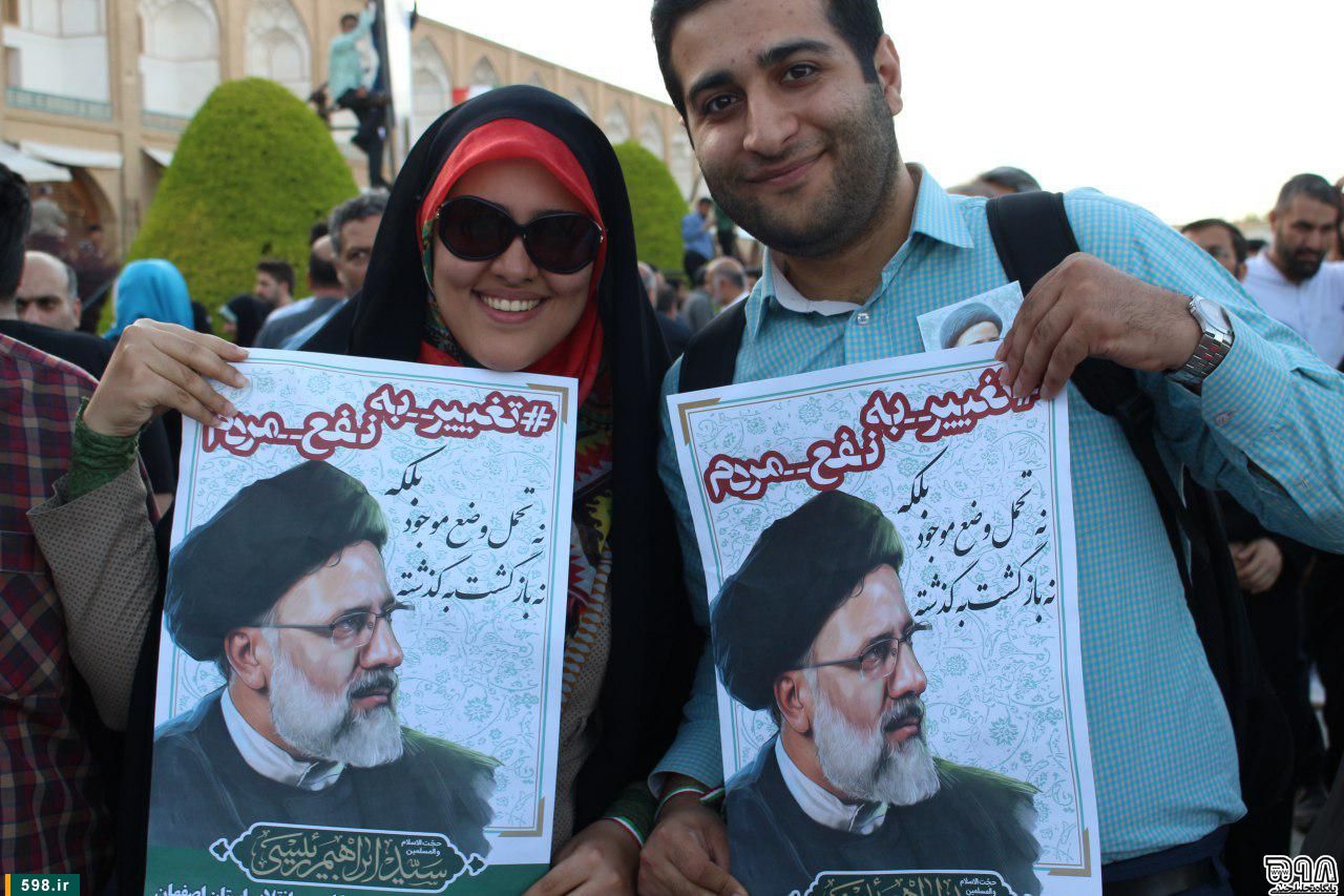 حجتالاسلام سیدابراهیم رئیسی کاندیدای دوازدهمین دوره انتخابات ریاست جمهوری عصر (دوشنبه 25 اردیبهشتماه) در اجتماع پرشور مردم اصفهان در میدان امام این شهر حضور یافت. مردم اصفهان در اسقبال بینظیر از رئیسی حماسهای ماندگار در نصف جهان رقم زدند. اصفهانیها با شعار درود بر قالیباف سلام بر رئیسی از اقدام قالیباف حمایت و از رئیسی استقبال کردند.