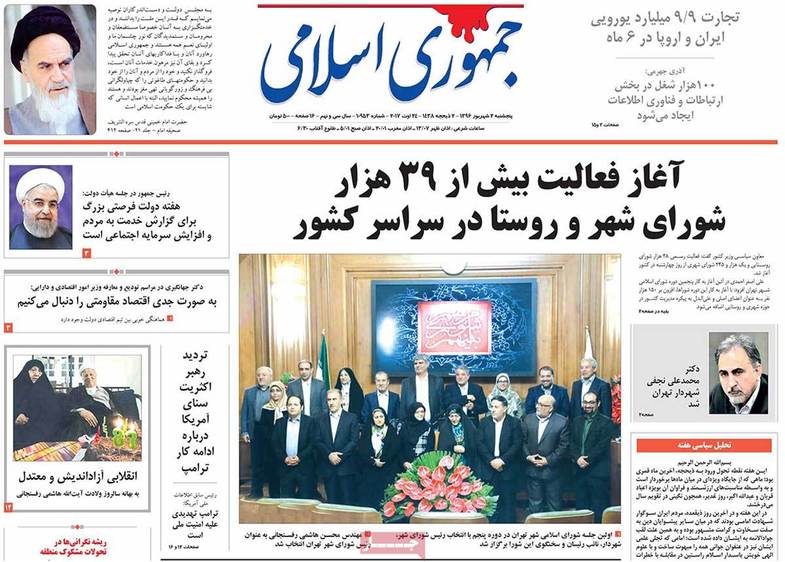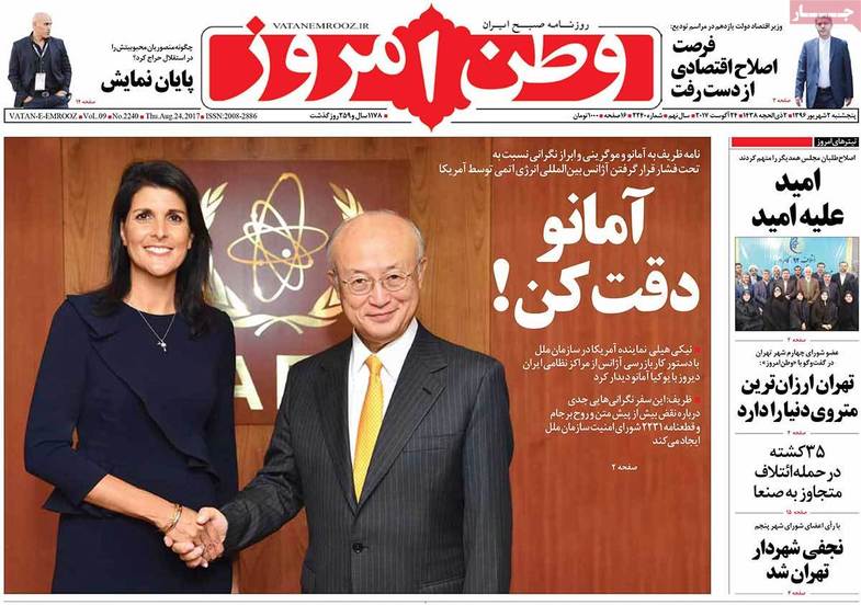 منتخب تصاویر صفحۀ نخست روزنامه های پنجشنبه، 2 شهریور ماه.
