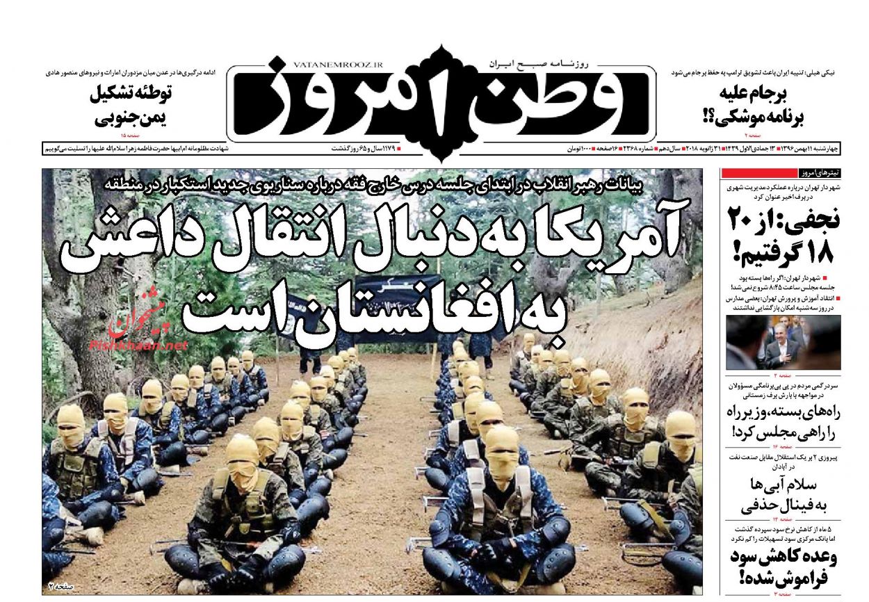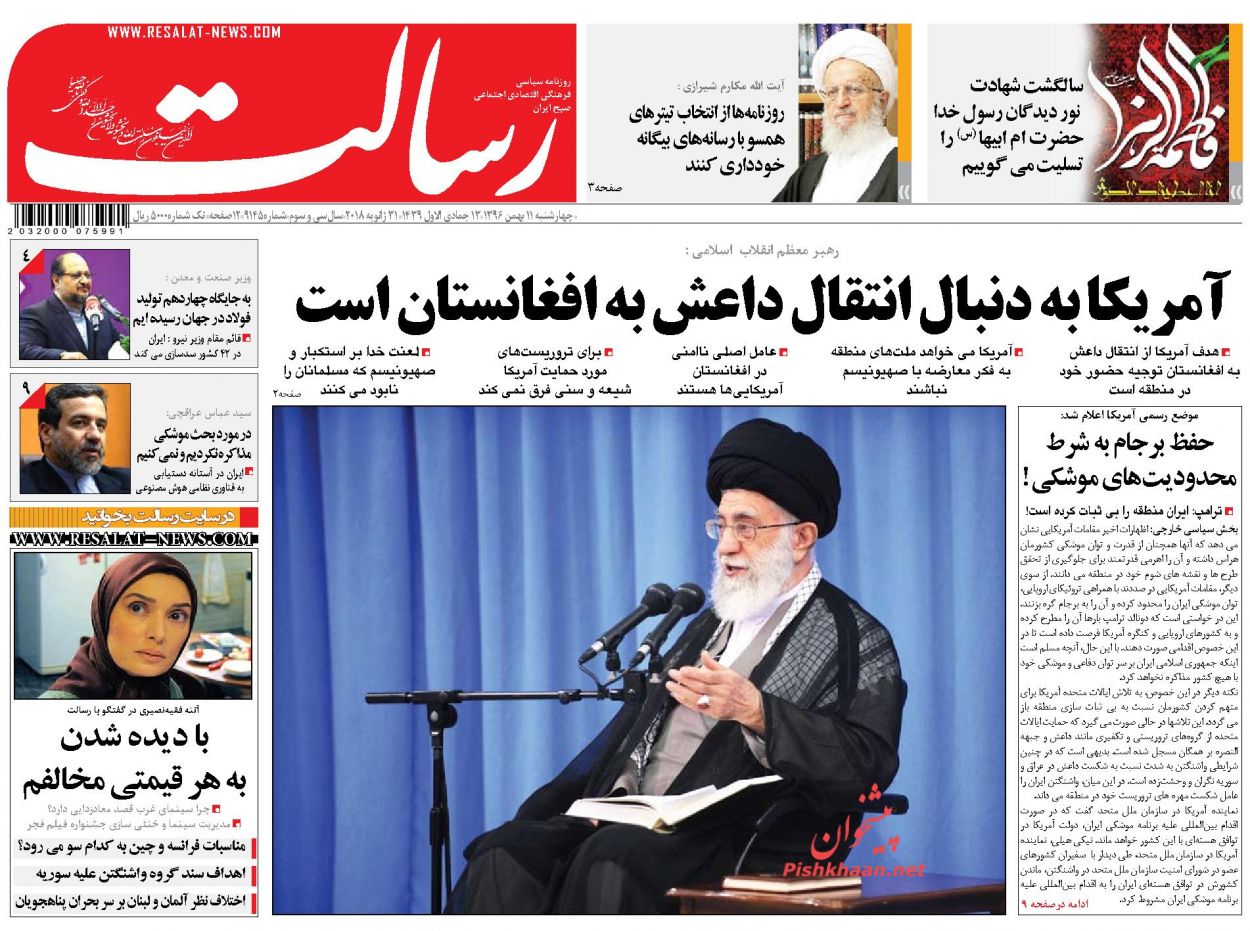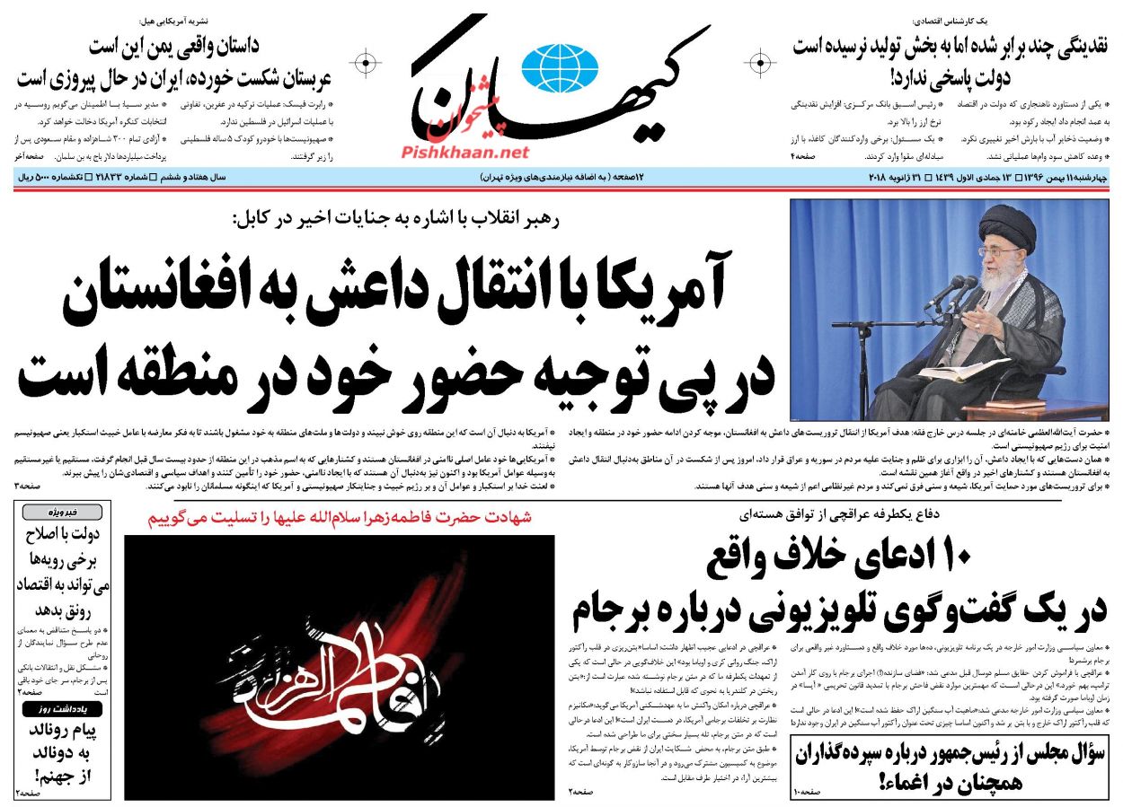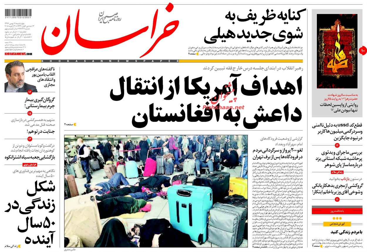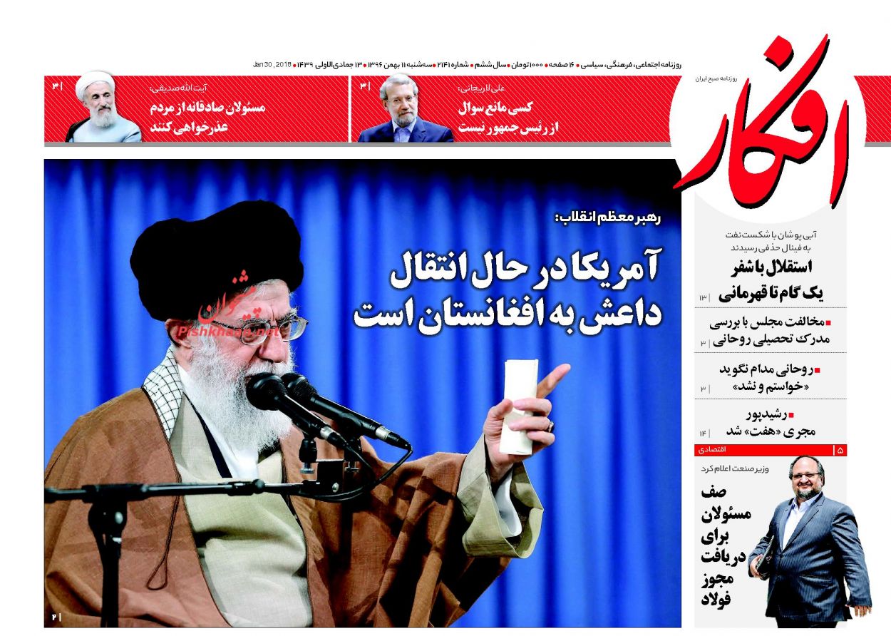 آمریکا در حال انتقال داعش به افغانستان است؛ برجام را گروگان گرفته‌اند؛ واردات عجیب جگر و پوست گوسفند و 6هزار کودک بی‌هویت در تهران؛ از جمله عناوین صفحه اول روزنامه‌های امروز کشورند.