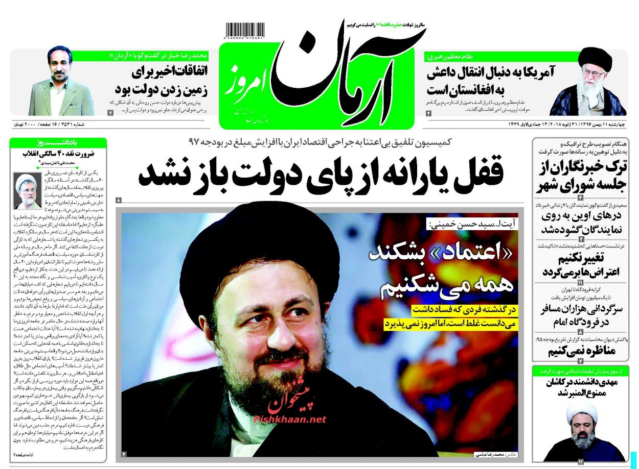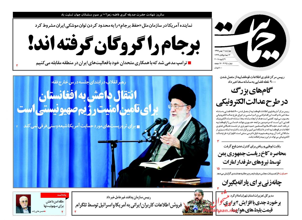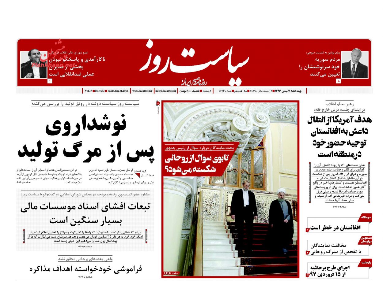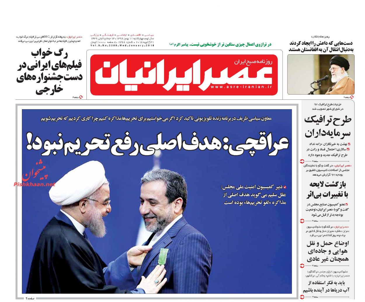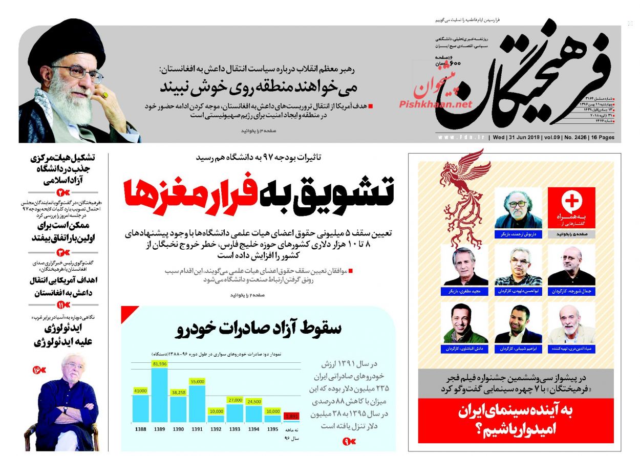 آمریکا در حال انتقال داعش به افغانستان است؛ برجام را گروگان گرفته‌اند؛ واردات عجیب جگر و پوست گوسفند و 6هزار کودک بی‌هویت در تهران؛ از جمله عناوین صفحه اول روزنامه‌های امروز کشورند.