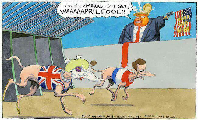 کاریکاتور گاردین درباره همراهی انگلیس و فرانسه با آمریکا در حمله به سوریه