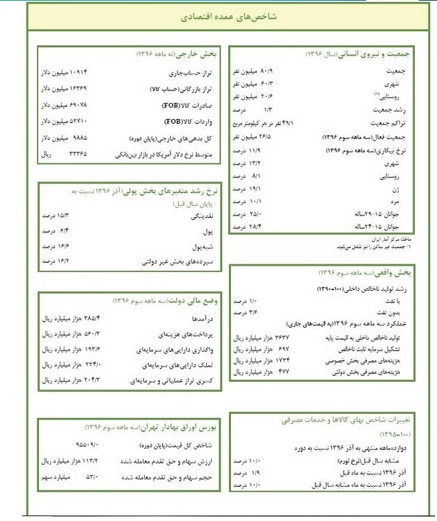 سهماهه سوم سال ۱۳۹۶ توسط اداره بررسیها و سیاستهای اقتصادی بانک مرکزی