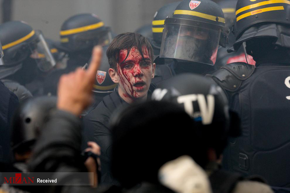 خشونت پلیس علیه تظاهرات اتحادیه های کارگری فرانسه