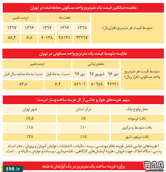 تومان در هر مترمربع بنای مفید ساختمان افزایش یافته و قیمت تمامشده ساخت