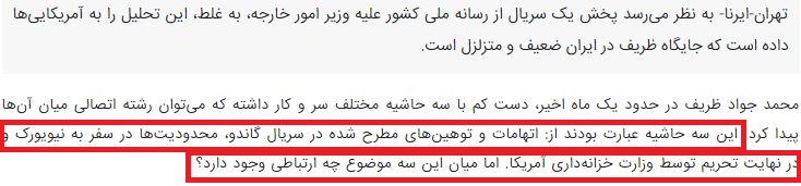 تلاش داشتند تا تحریم ظریف را به عوامل داخلی نظیر سریال «گاندو» پیوند زده