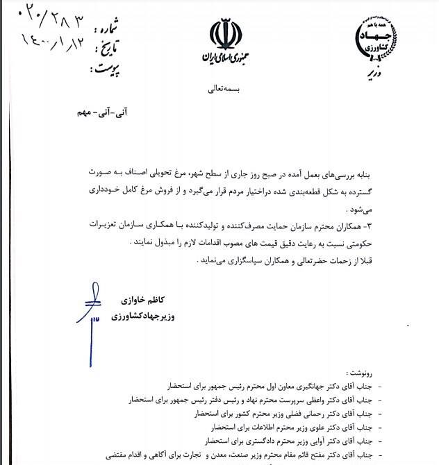 اتخاذ شده در قرارگاه استانی متناظر قرارگاه اصلی نسبت به ارسال مرغ به