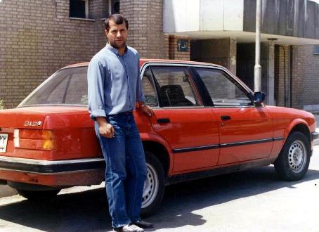 عکس زير علي پروين در کنار خودرو بي ام و قرمز رنگش در سالهاي دور را نشان ميدهد.