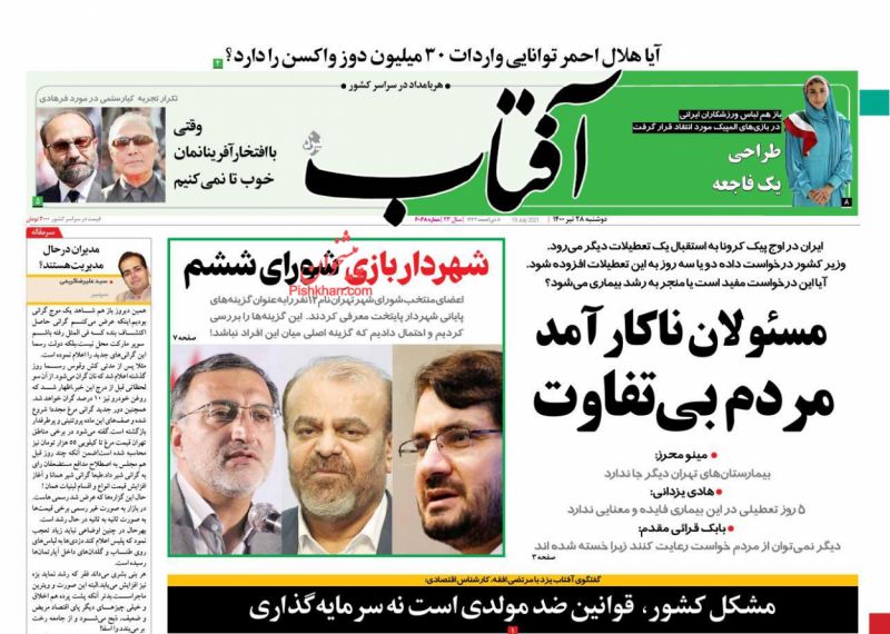 تصاویر/ صفحه نخست روزنامه‌های سیاسی امروز 28 تیر