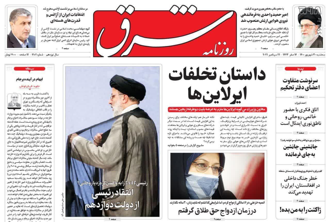 صفحه نخست روزنامه‌های سیاسی امروز (سه‌شنبه ۳۰ شهریور) را در ادامه مشاهده می‌کنید.