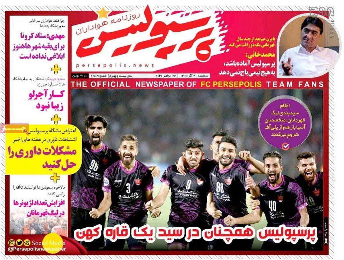 تصاویر صفحه نخست روزنامه‌های ورزشی سه‌شنبه 2 آذر ماه را در زیر مشاهده می‌نمایید.