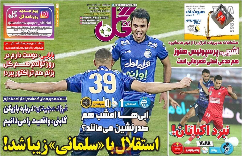 تصاویر صفحه نخست روزنامه‌های ورزشی چهارشنبه 24 آذر ماه را در زیر مشاهده می‌نمایید.