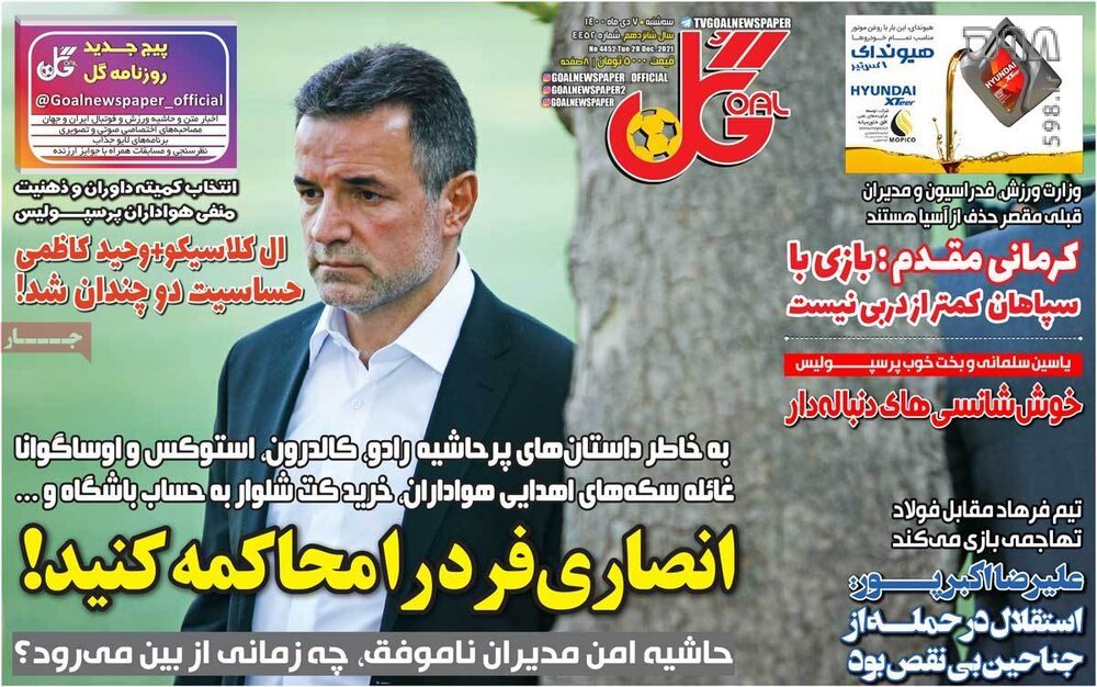تصاویر صفحه نخست روزنامه‌های ورزشی سه‌شنبه 7 دی‌ماه را در زیر مشاهده می‌نمایید.