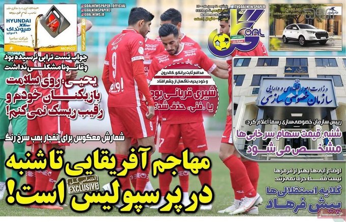 تصاویر صفحه نخست روزنامه‌های ورزشی ‌پنجشنبه 21 بهمن‌ماه را در زیر مشاهده می‌نمایید.