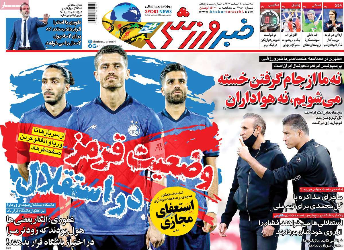 تصاویر صفحه نخست روزنامه‌های ورزشی ‌سه‌شنبه 3 اسفند ماه را در زیر مشاهده می‌نمایید.