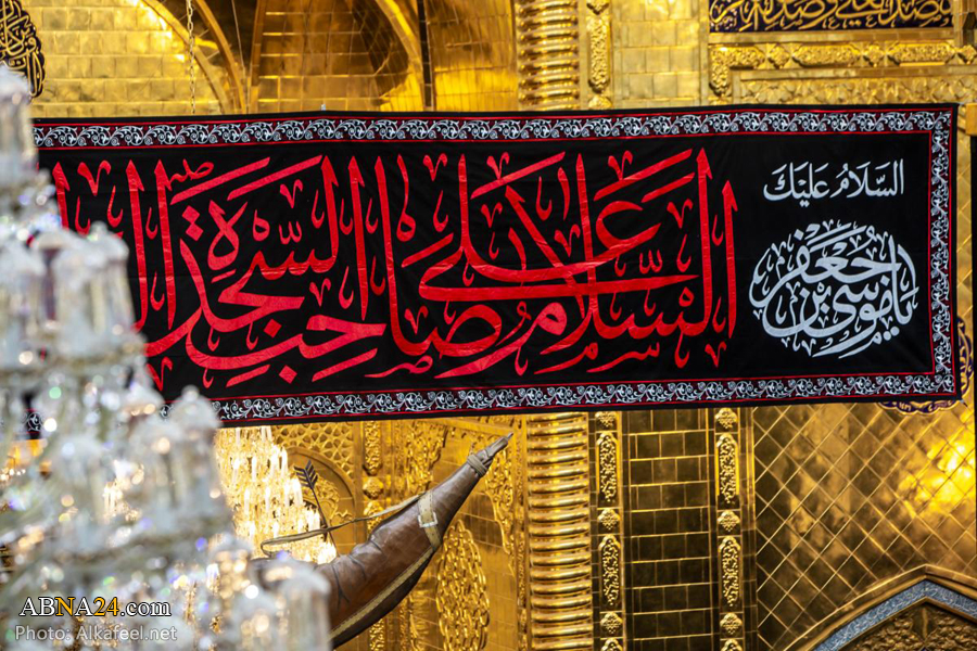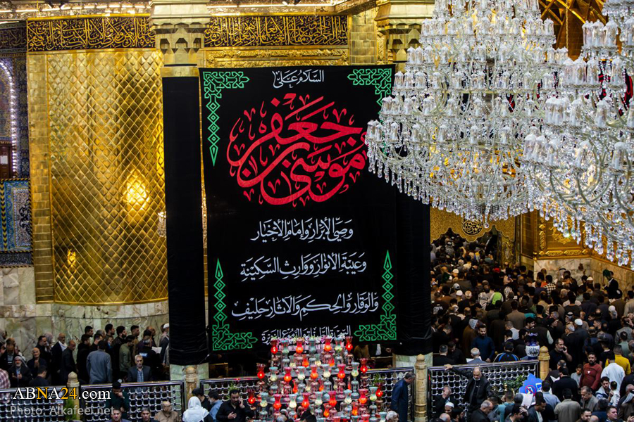 حرم حضرت عباس(ع) در شهر کربلای معلی در آستانه شهادت امام موسی کاظم(ع) به نشانه عزا، سیاه پوش شد.