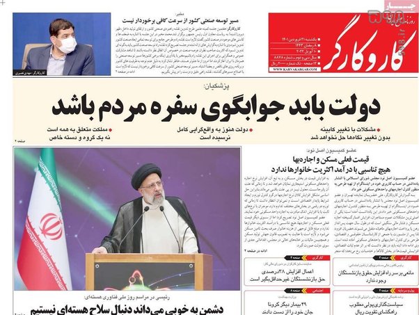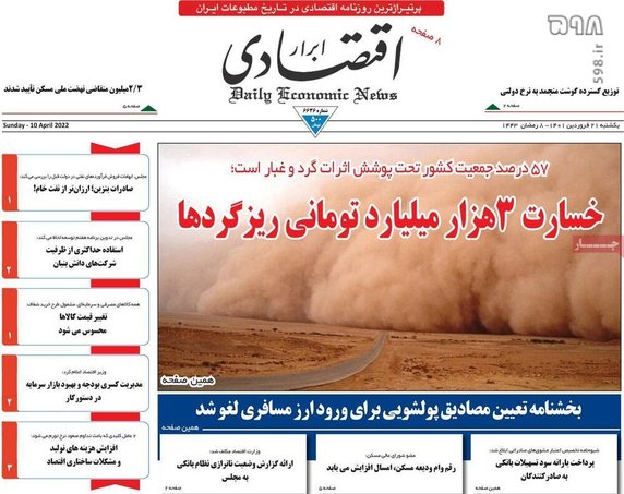 صفحه اول روزنامه‌های یکشنبه 21 فروردین