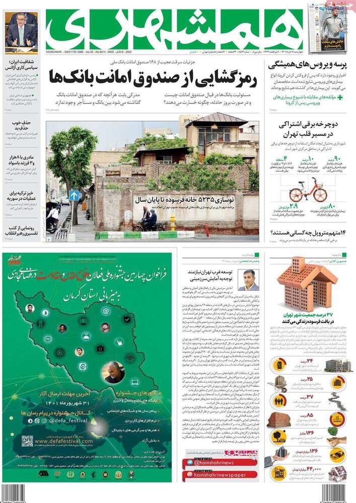 صفحه اول روزنامه‌های چهارشنبه 18 خرداد