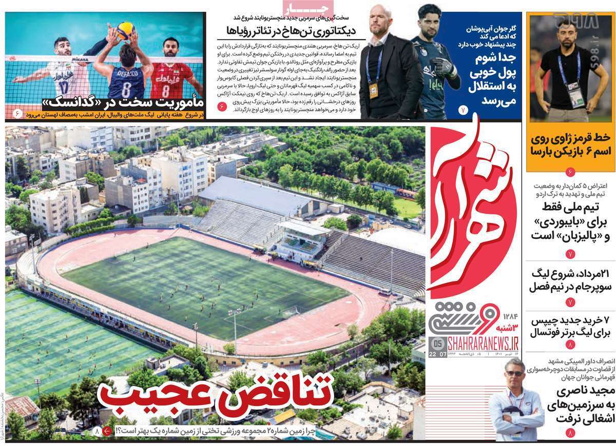 تصاویر صفحه نخست روزنامه‌های ورزشی سه‌شنبه 14 تیر‌ماه را در زیر مشاهده می‌نمایید.