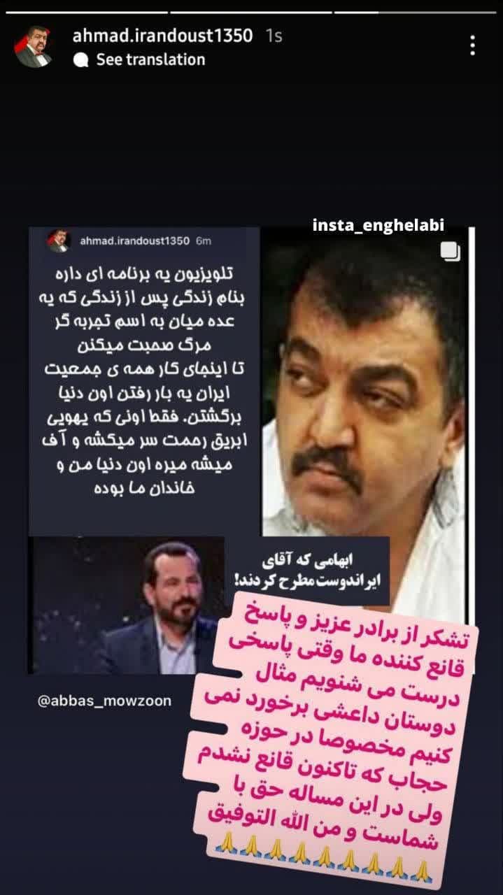 جواب دقیق عباس موزون به شوخی بی مزه احمد ایراندوست که در استوری بعدی اعلام کرد قانع شده و از آقای موزون تشکر کرد
