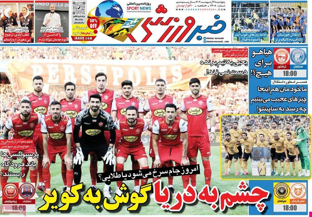 تصاویر صفحه نخست روزنامه‌های ورزشی پنجشنبه ۲۸ اردیبهشت را در زیر مشاهده می‌نمایید.