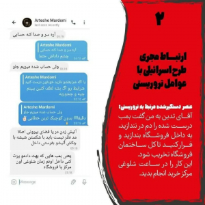 تصاویری که مشاهده میکنید گوشه ای از چت یکی از اعضای گروهک تروریستی ارتش مردمی با مسئول این گروهک تروریستی می‌باشد.