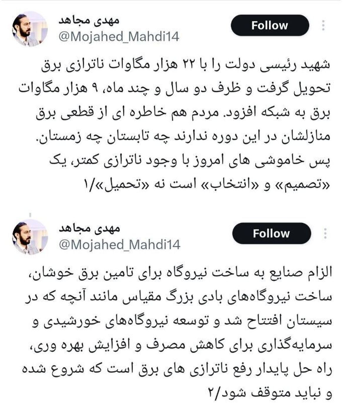 معاون پیگیریهای ویژه شهید رئیسی: خاموشی های امروز دولت، یک «تصمیم» و «انتخاب» است نه «تحمیل»