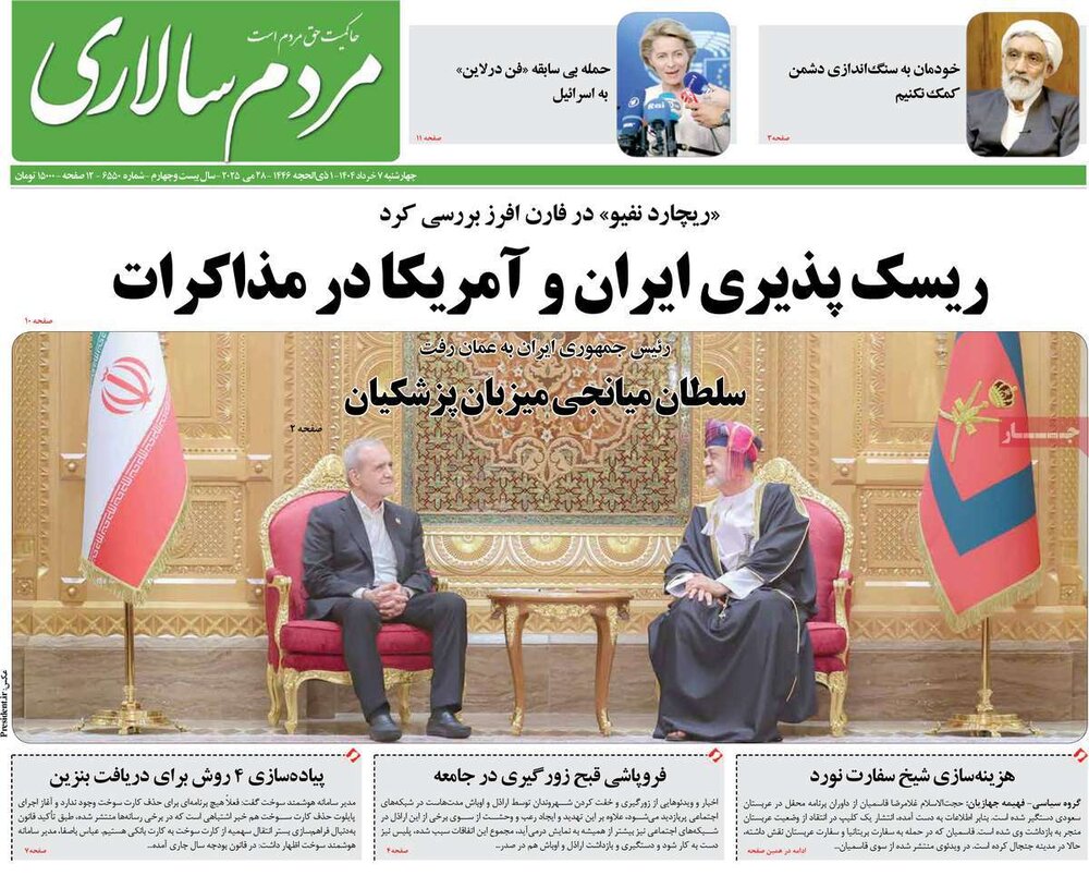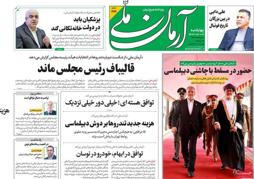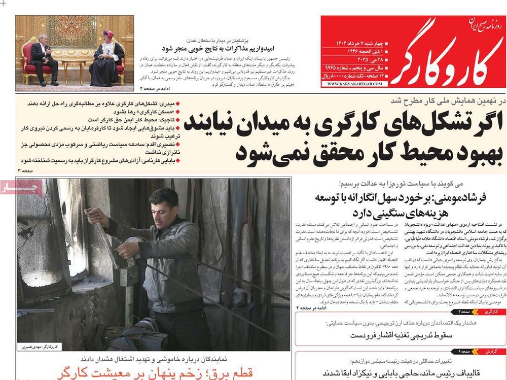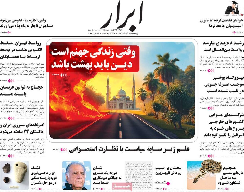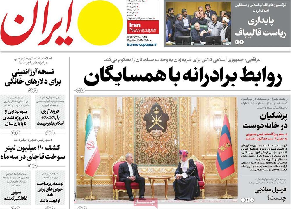 صفحه اول روزنامه‌های چهارشنبه 7 خرداد