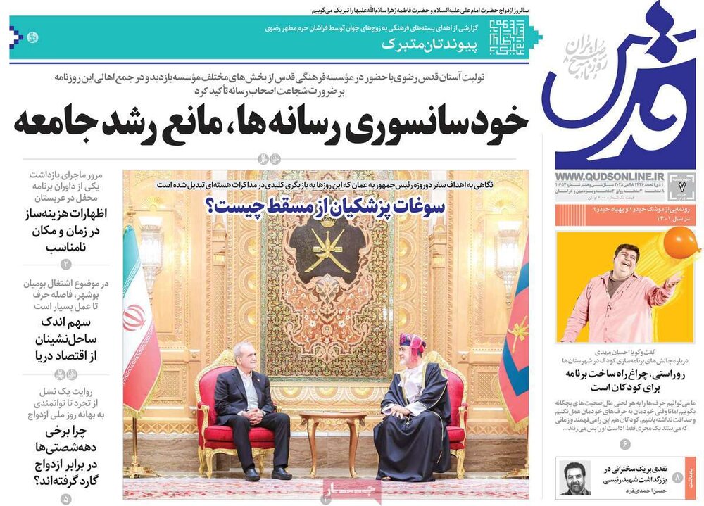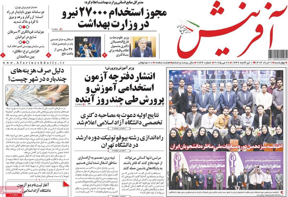 صفحه اول روزنامه‌های چهارشنبه ۷ خرداد