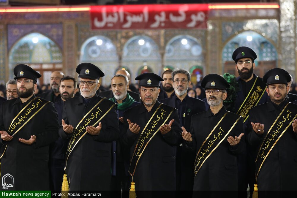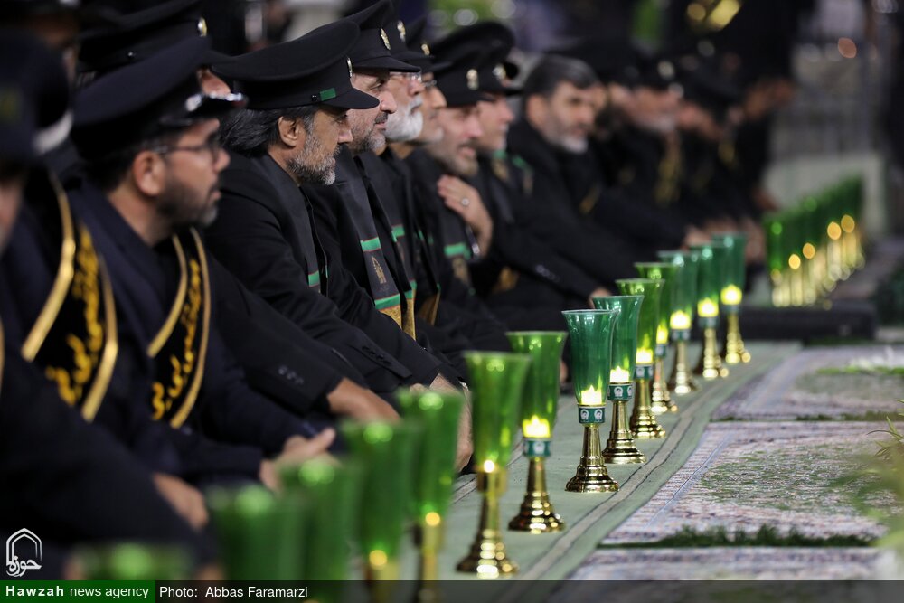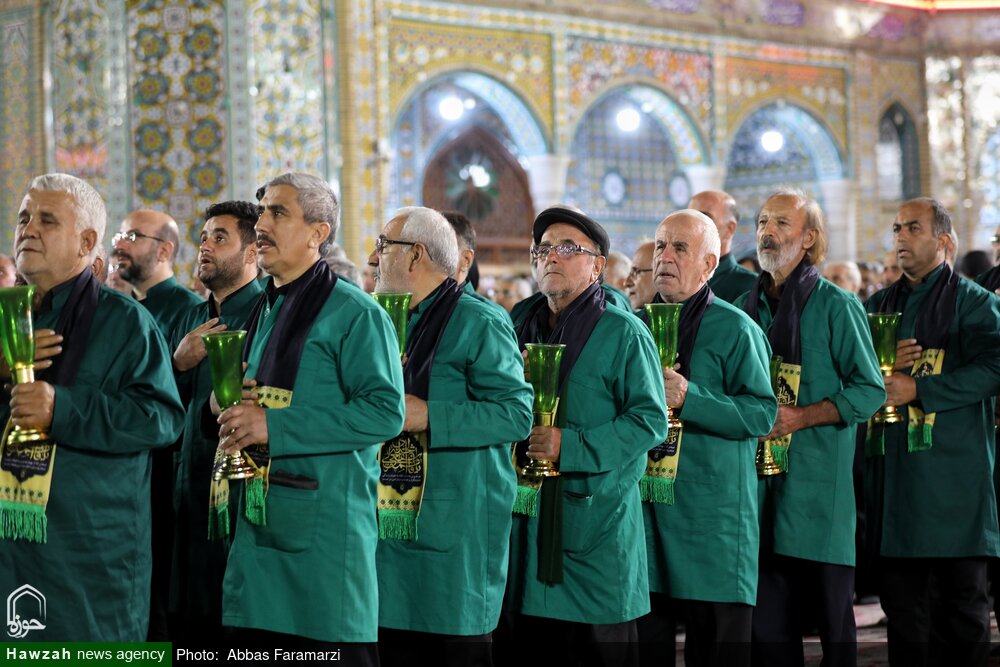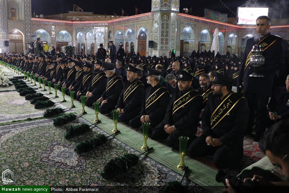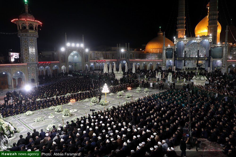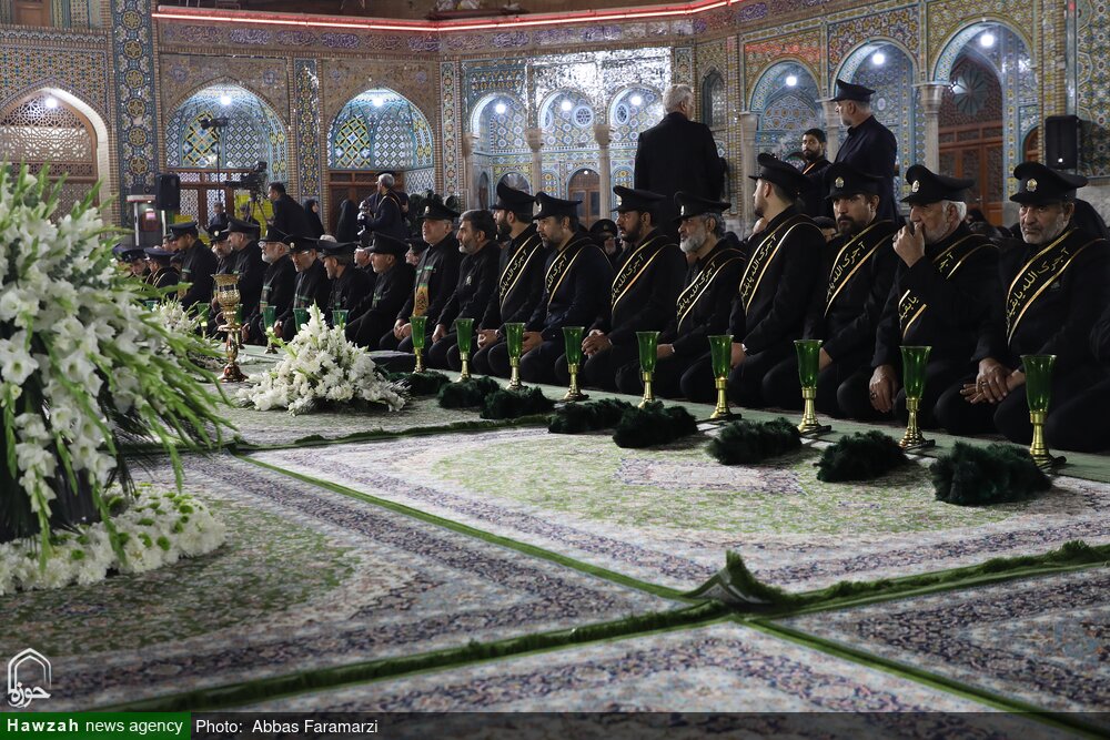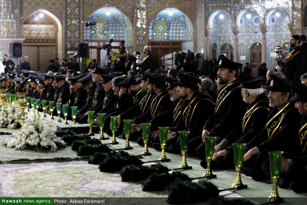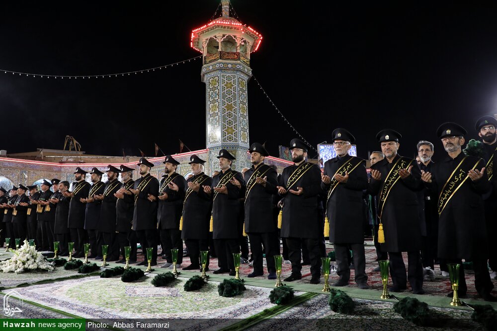 آیین شمعدان گردانی و خطبه خوانی خادمان حرم مطهر به مناسبت رحلت جانسوز حضرت فاطمه معصومه سلاماللهعلیها با قرائت قران حامد علیزاده، سخنرانی حجت الاسلام والمسلمین میرباقری و مداحی سید مهدی میرداماد و حاج عباس حیدرزاده در جمع باشکوه خادمان حرم مطهر در صحن امام رضا علیه السلام برگزار شد/ عباس فرامرزی