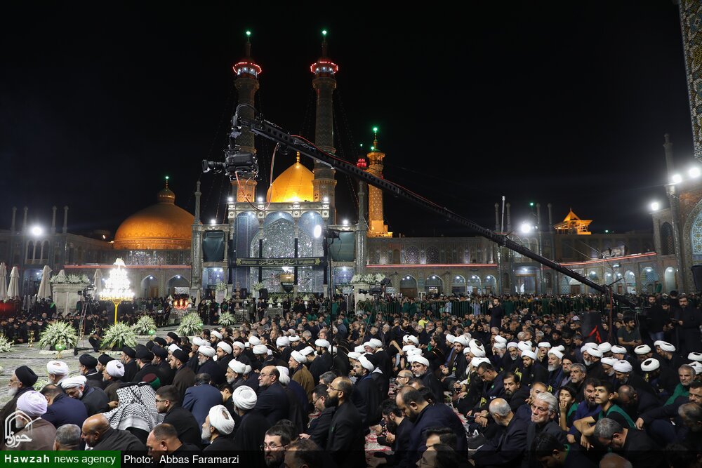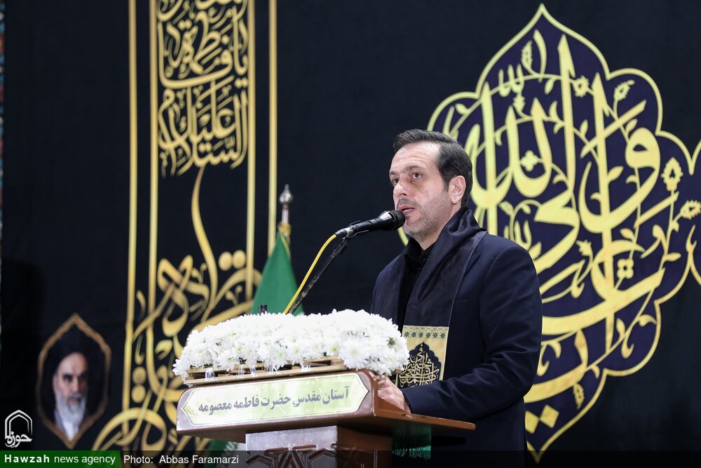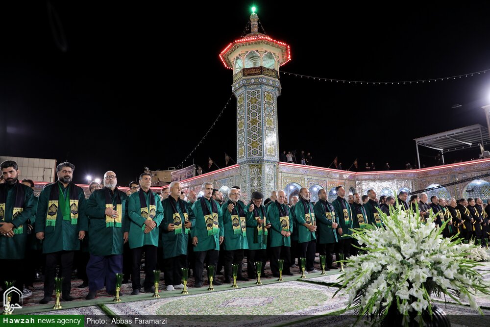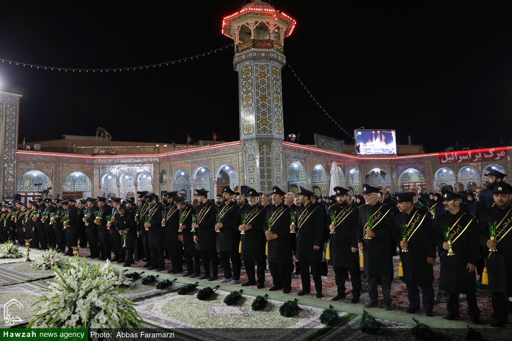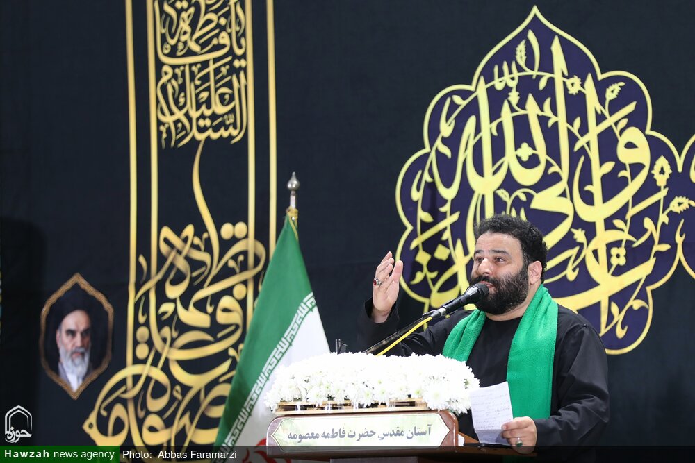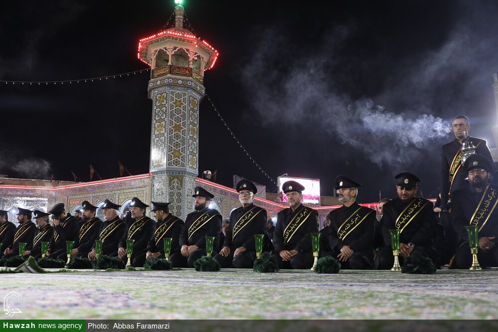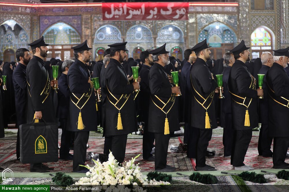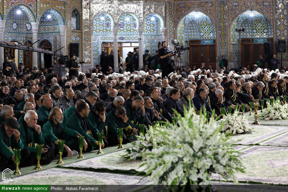 آیین شمعدان گردانی و خطبه خوانی خادمان حرم مطهر به مناسبت رحلت جانسوز حضرت فاطمه معصومه سلاماللهعلیها با قرائت قران حامد علیزاده، سخنرانی حجت الاسلام والمسلمین میرباقری و مداحی سید مهدی میرداماد و حاج عباس حیدرزاده در جمع باشکوه خادمان حرم مطهر در صحن امام رضا علیه السلام برگزار شد/ عباس فرامرزی
