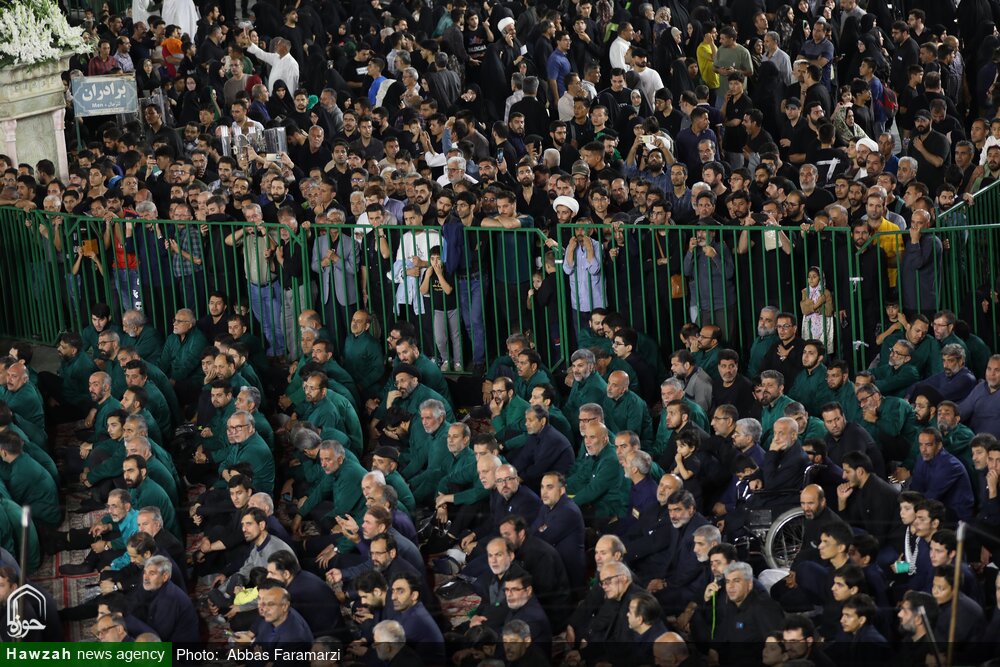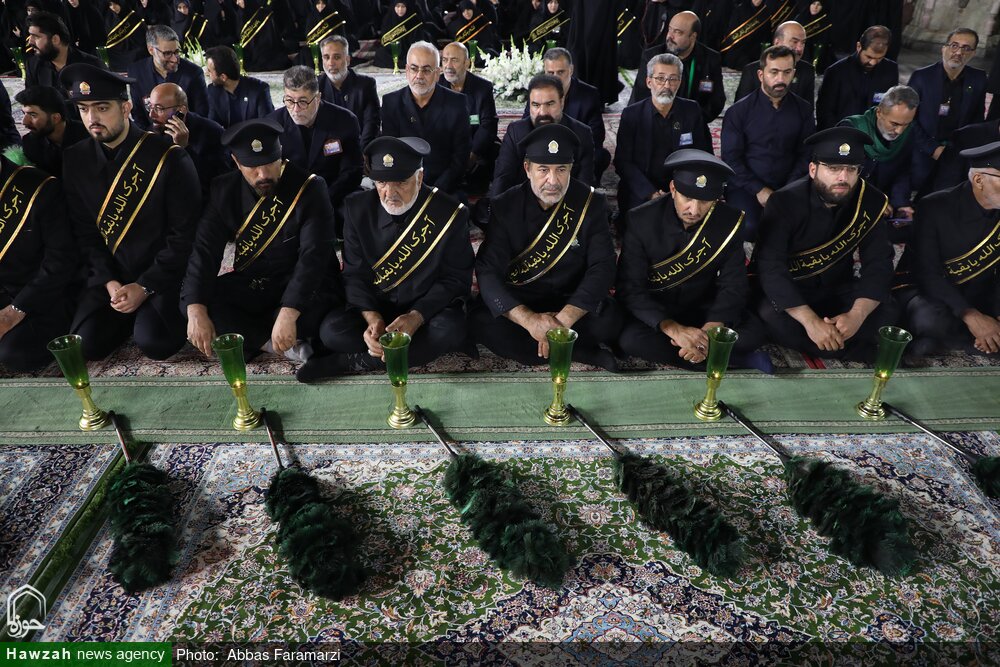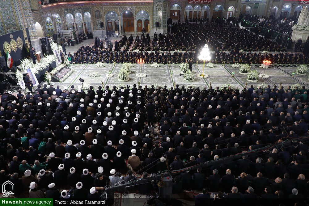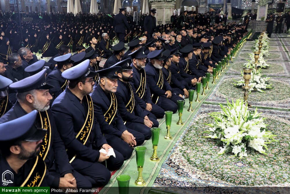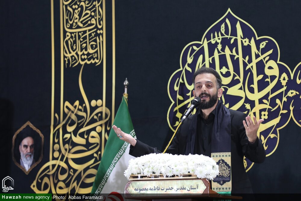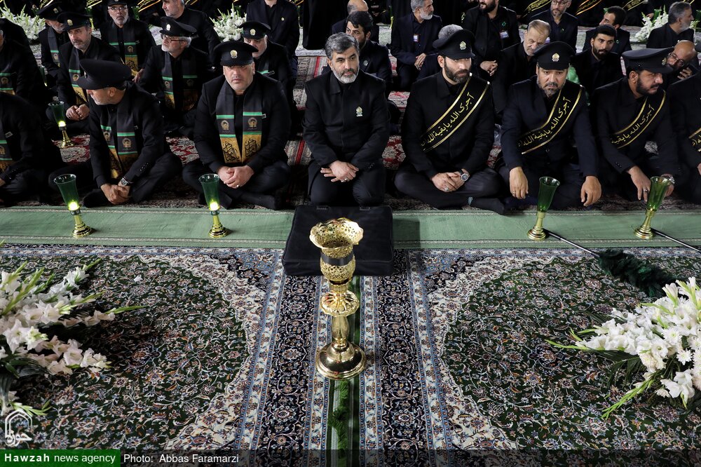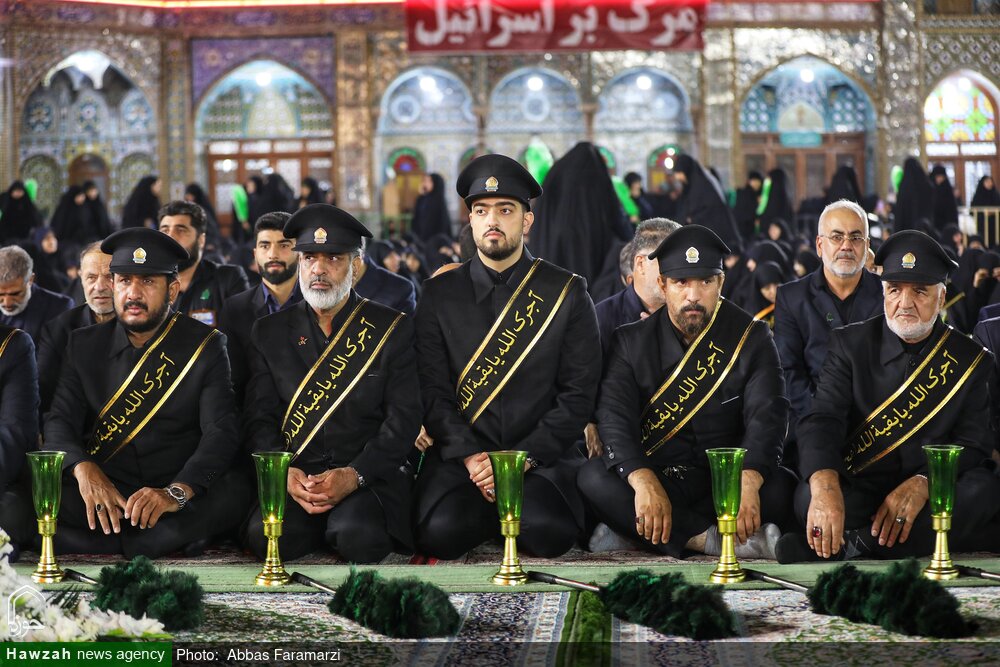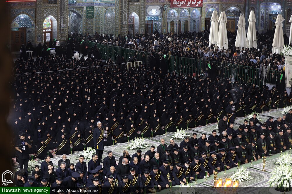 آیین شمعدان گردانی و خطبه خوانی خادمان حرم مطهر به مناسبت رحلت جانسوز حضرت فاطمه معصومه سلاماللهعلیها با قرائت قران حامد علیزاده، سخنرانی حجت الاسلام والمسلمین میرباقری و مداحی سید مهدی میرداماد و حاج عباس حیدرزاده در جمع باشکوه خادمان حرم مطهر در صحن امام رضا علیه السلام برگزار شد/ عباس فرامرزی