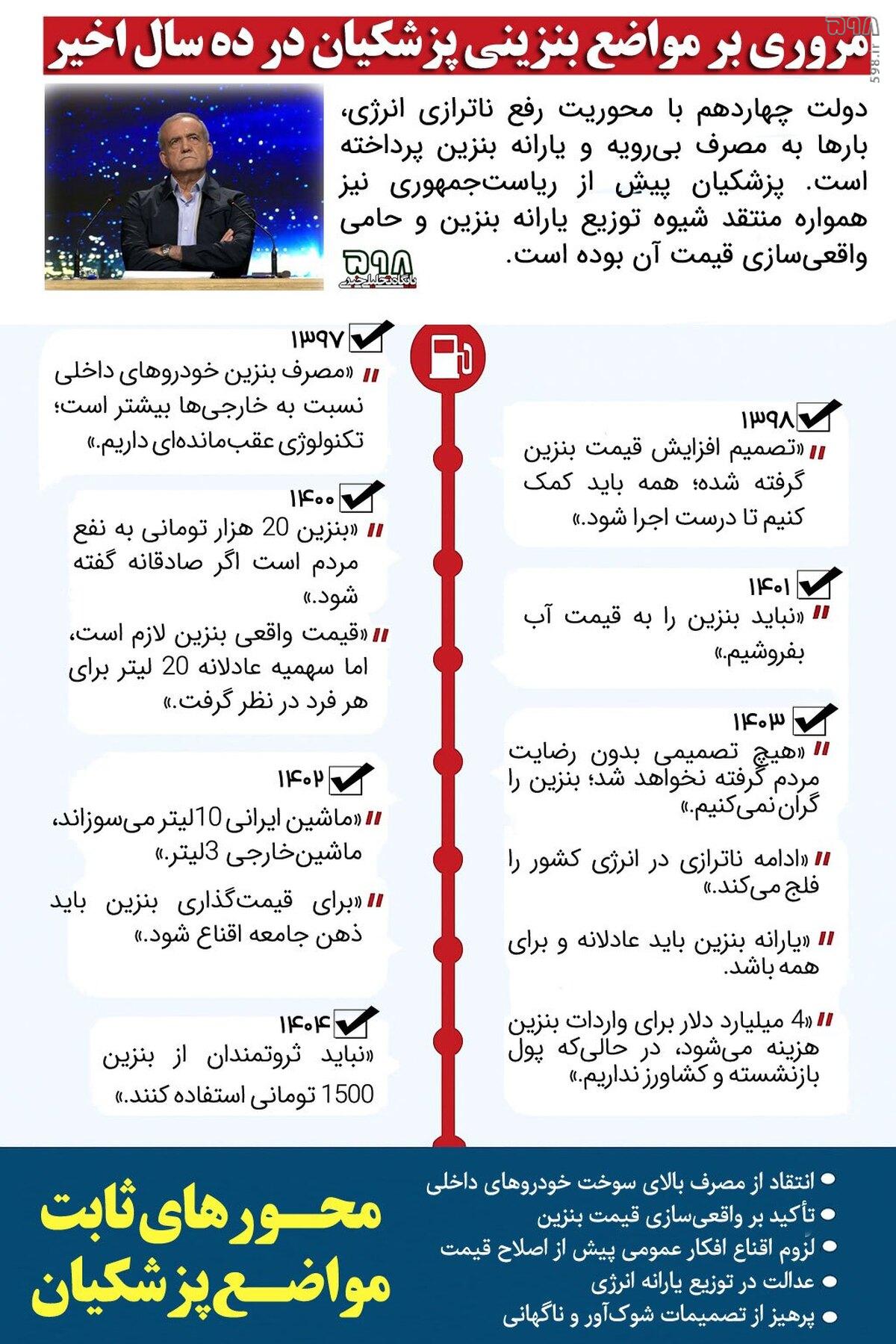 اینفوگرافیک| مروری بر مواضع بنزینی مسعود پزشکیان در ده سال اخیر