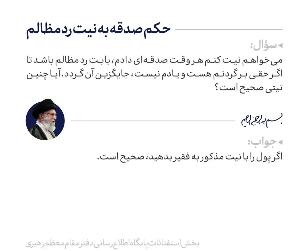 میخواهیم نیت کنیم هر وقت صدقهای دادم، برای رد مظالم باشد تا اگر حقی بر گردن ما هست و یادمان نیست، جایگزین آن گردد. آیا چنین نیتی صحیح است؟