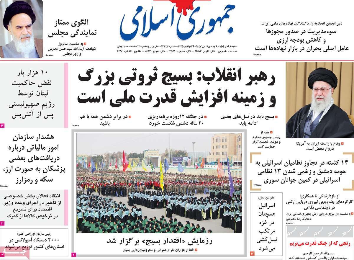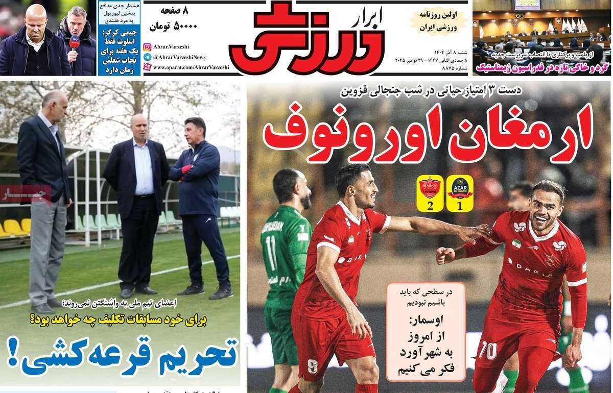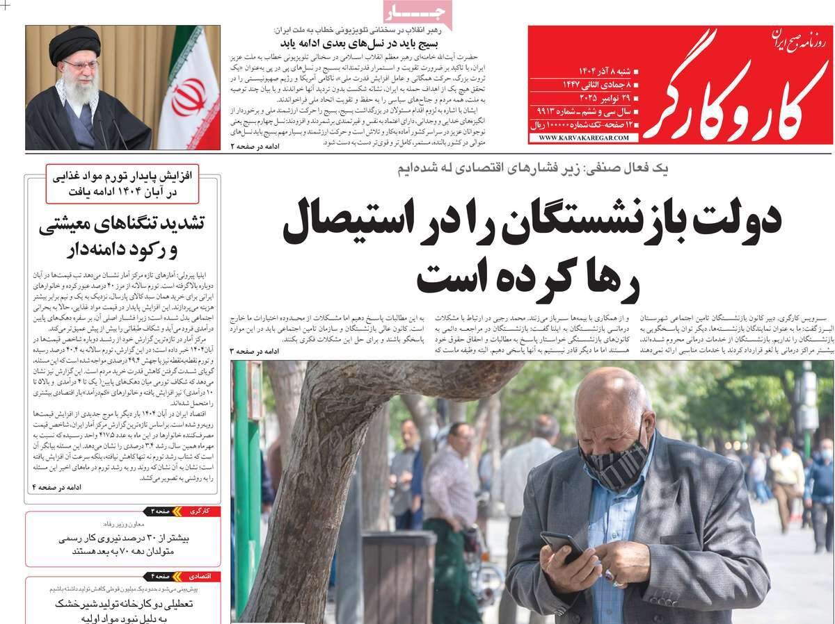 صفحه اول روزنامه‌های شنبه 8 آذر ماه