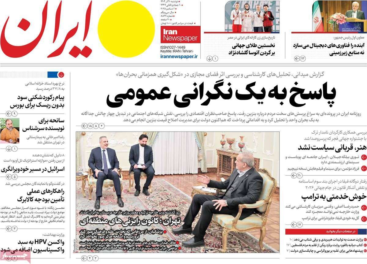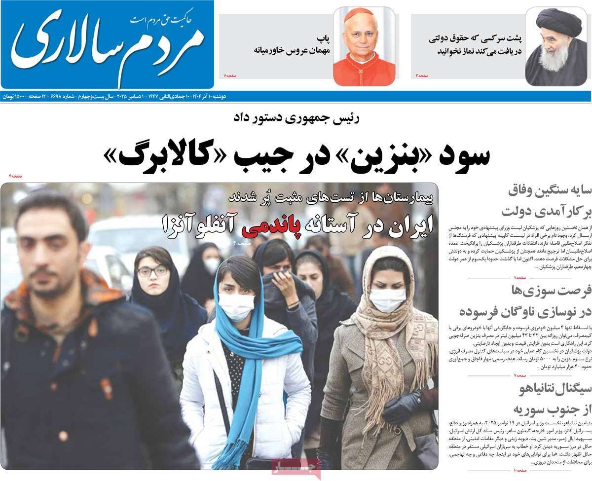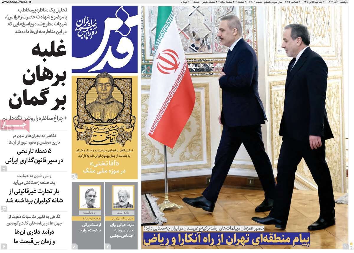 صفحه اول روزنامه‌های دوشنبه 10 آذر ماه
