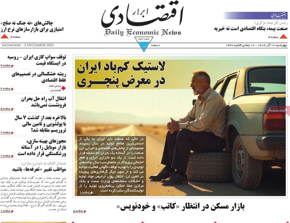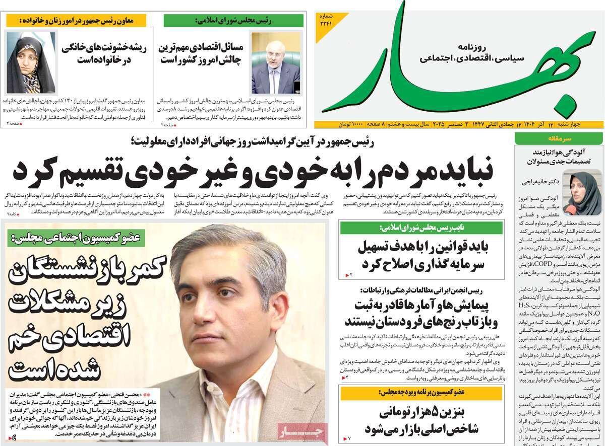 صفحه اول روزنامه‌های چهارشنبه 12 آذر ماه