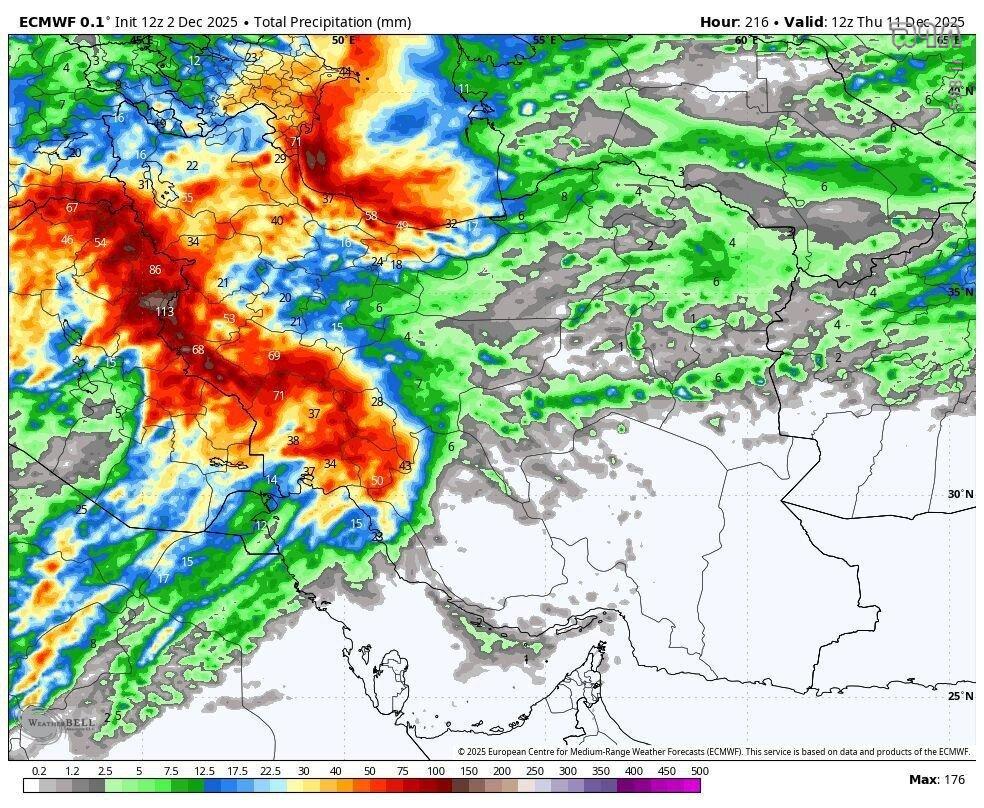 همچنین به روز رسانی جدید مدل ECMWF اروپا تا ۱۹ آذر نشان می دهد که بارش‌های نافع و گسترده در کل غرب کشور فعال می‌شود.