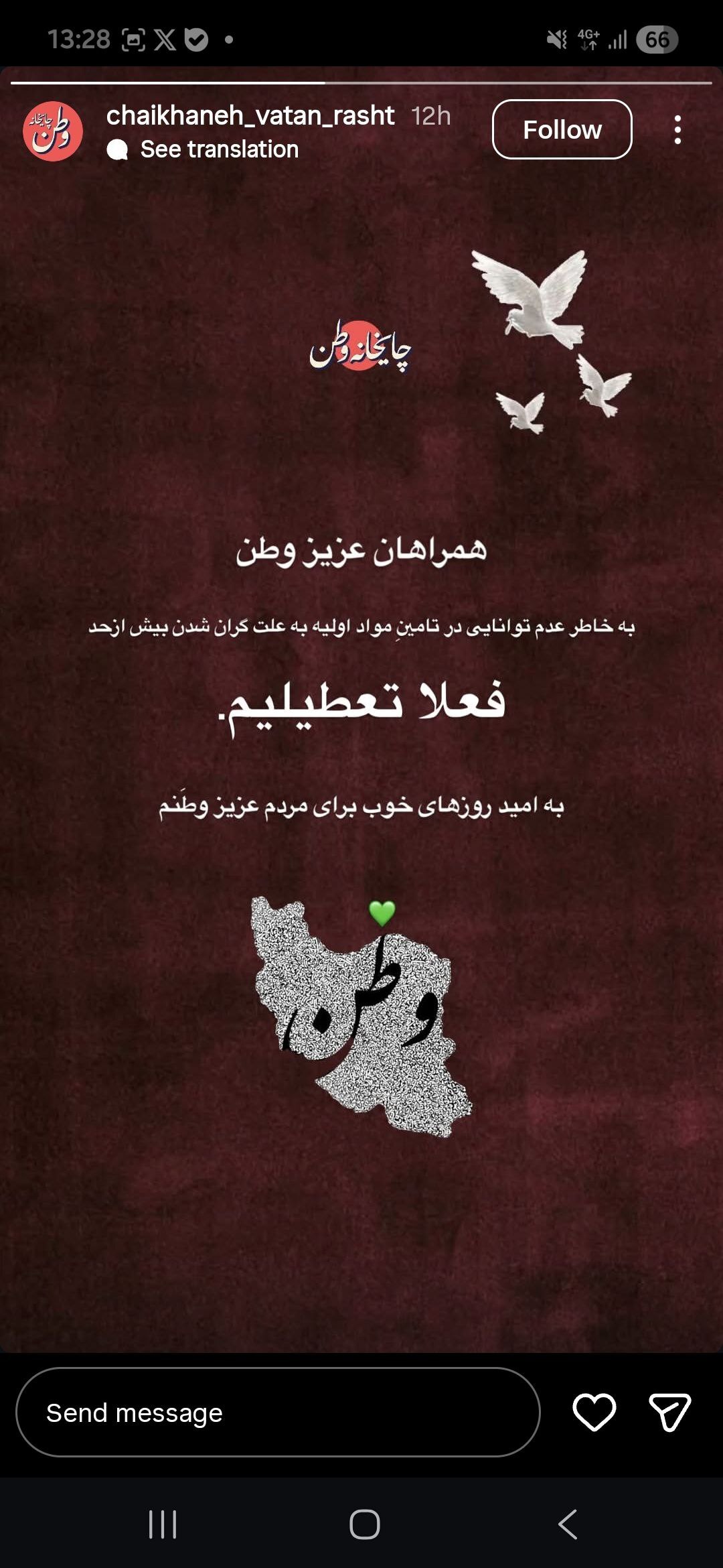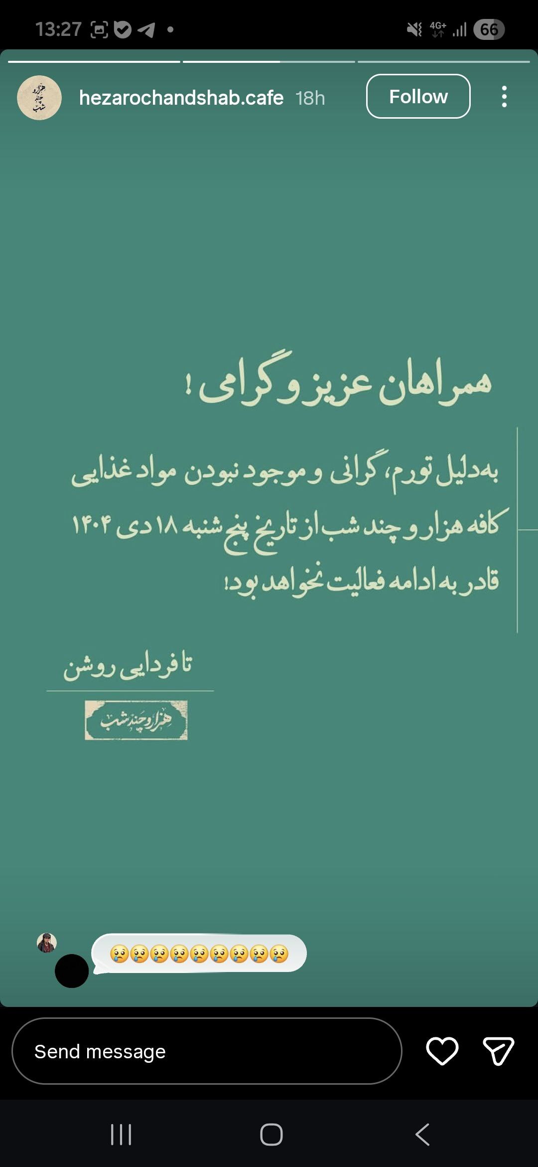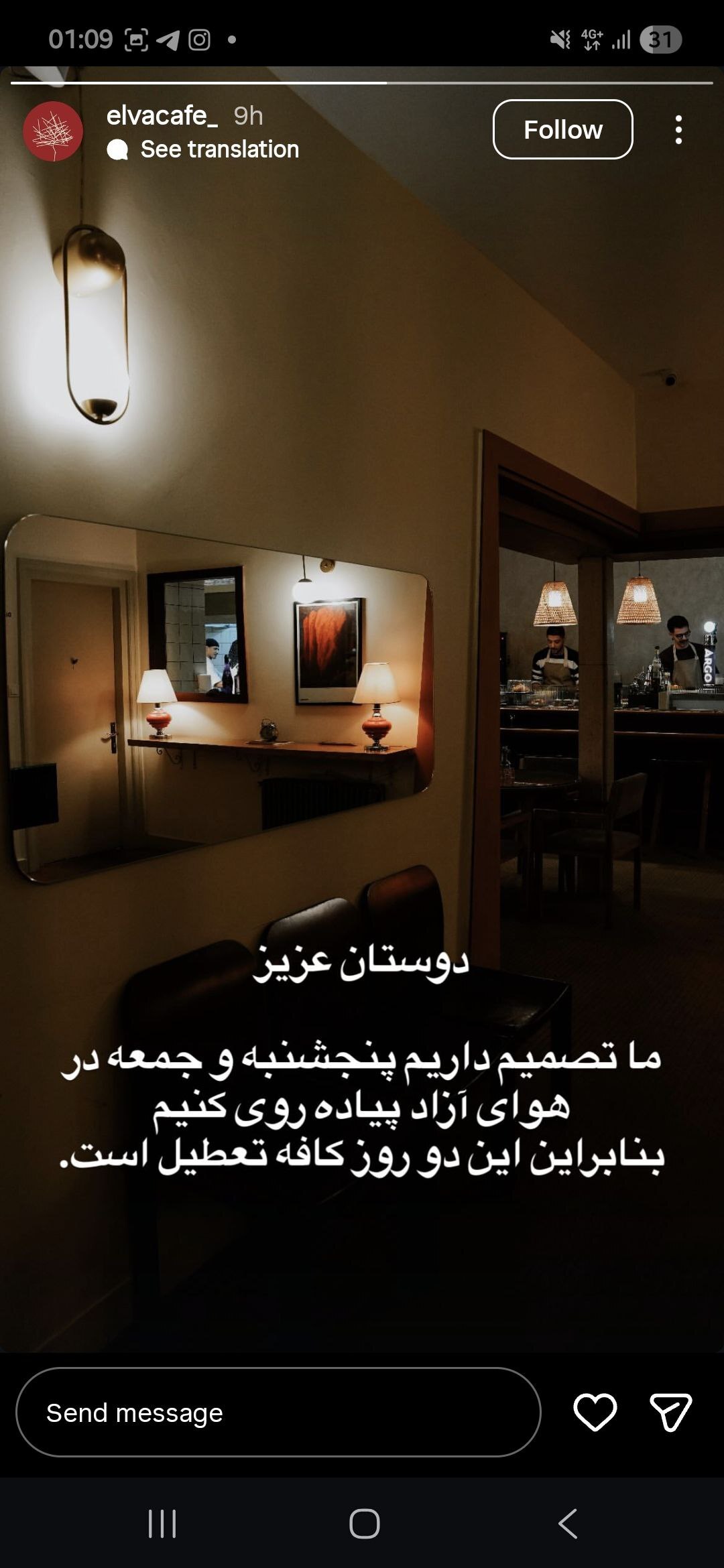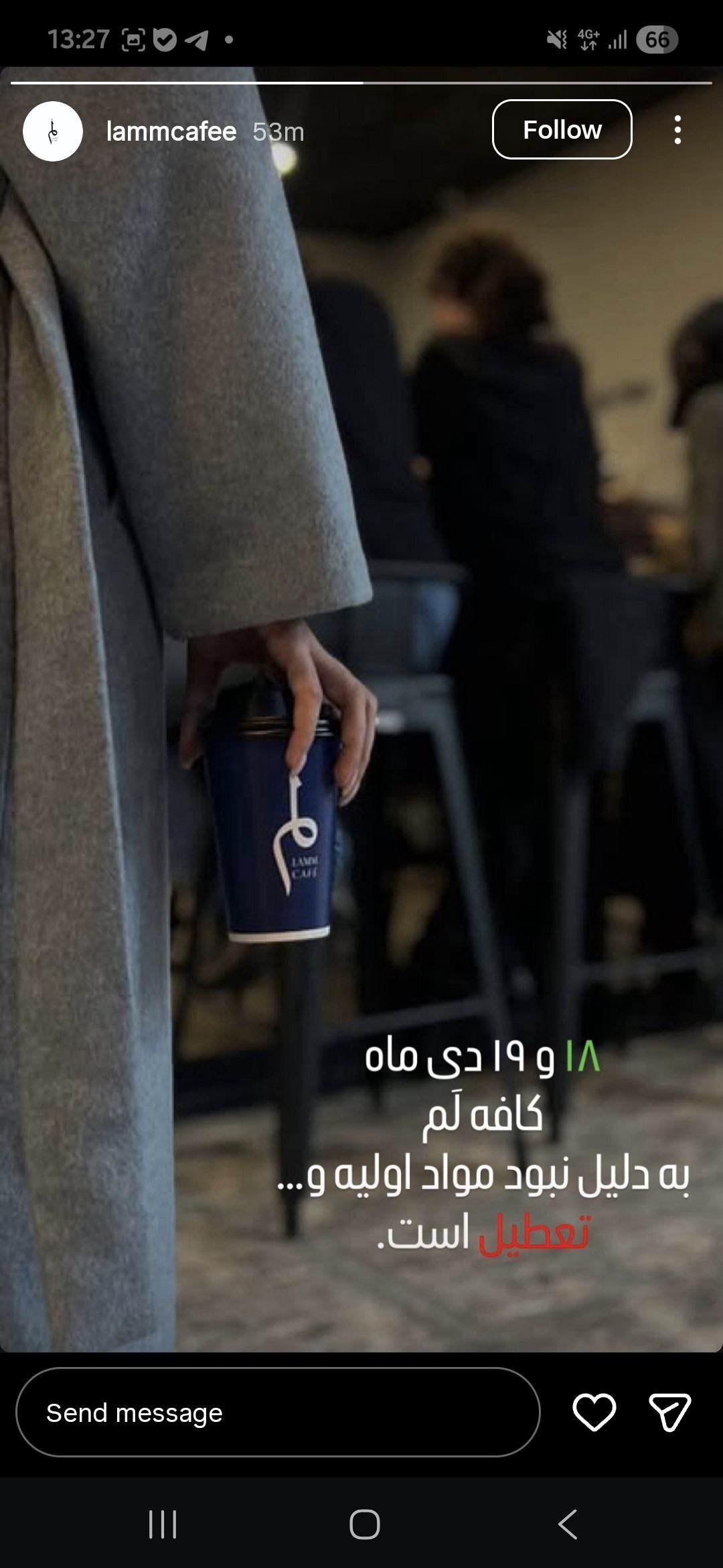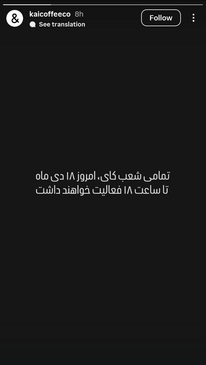 گفتنی است؛ روز پنجشنبه ۱۸ دی ۱۴۰۴ که اغتشاشگران وارد فاز تروریستی در خیابان‌های کشور شدند، برخی از واحد‌های صنفی مثل کافه «ساعدی نیا» و کافه «وریا» با انتشار پست‌هایی در فضای مجازی، از بستن این واحد‌های تجاری در حمایت از جریان اغتشاشات خبر دادند.