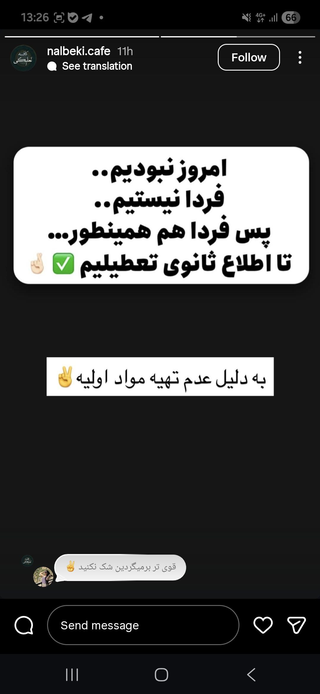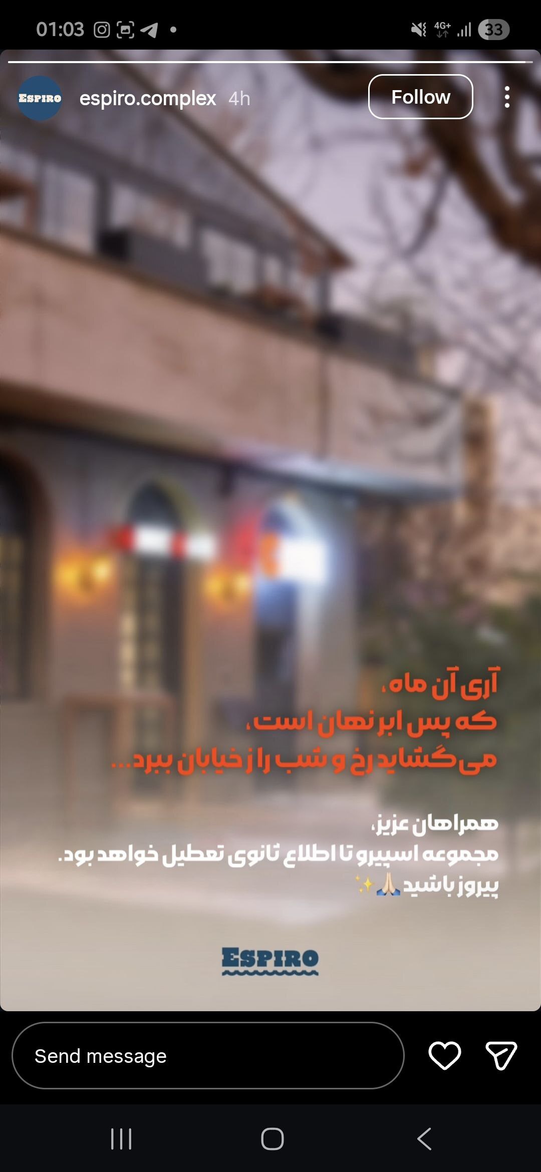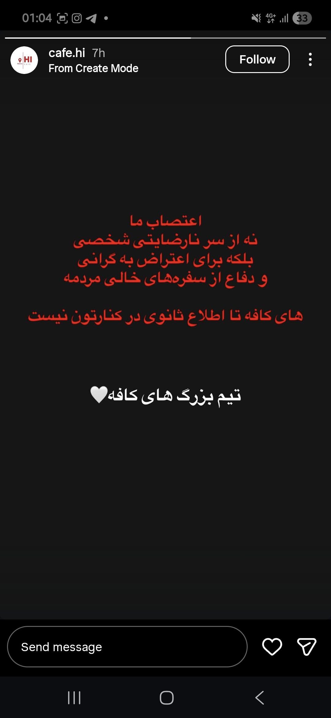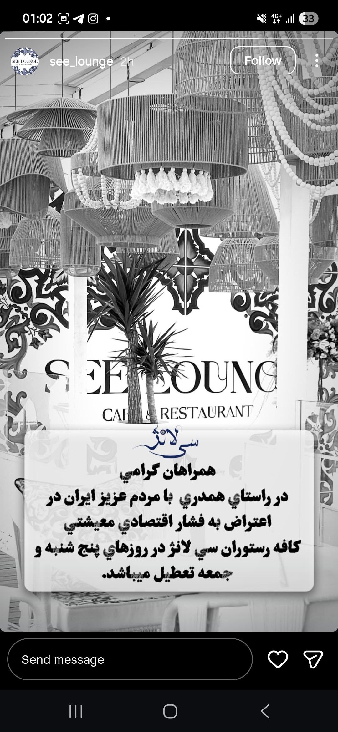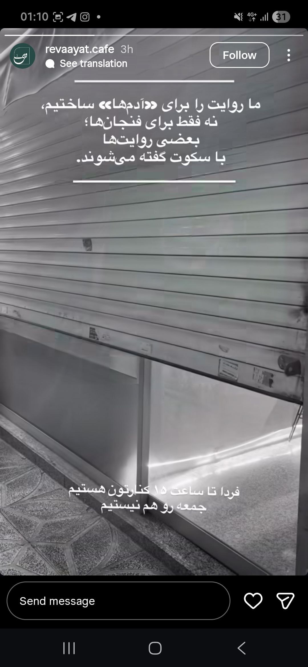 گفتنی است؛ روز پنجشنبه ۱۸ دی ۱۴۰۴ که اغتشاشگران وارد فاز تروریستی در خیابان‌های کشور شدند، برخی از واحد‌های صنفی مثل کافه «ساعدی نیا» و کافه «وریا» با انتشار پست‌هایی در فضای مجازی، از بستن این واحد‌های تجاری در حمایت از جریان اغتشاشات خبر دادند.