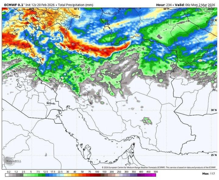 رئیس مرکز ملی پیشبینی و مدیریت بحران مخاطرات وضع هوا ادامه داد: روز چهارشنبه (۶ اسفند) بارش پراکنده در استانهای زنجان، قزوین، البرز و تهران ادامه خواهد داشت. همچنین با نفوذ جریانات خنک شمالی به سواحل دریای خزر، در استانهای گیلان، مازندران، گلستان، خراسان شمالی و شمال خراسان رضوی، ابرناکی، رگبار، رعدوبرق و وزش باد همراه با کاهش نسبی دما مورد انتظار است.